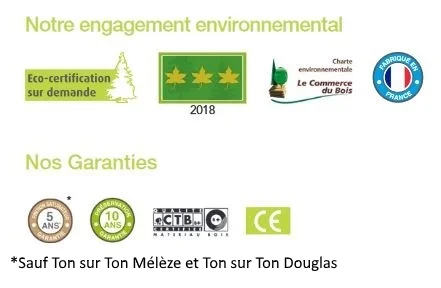 • Garantie de 5 ans sur la finition (sauf le coloris Ton sur Ton en Mélèze et Douglas)