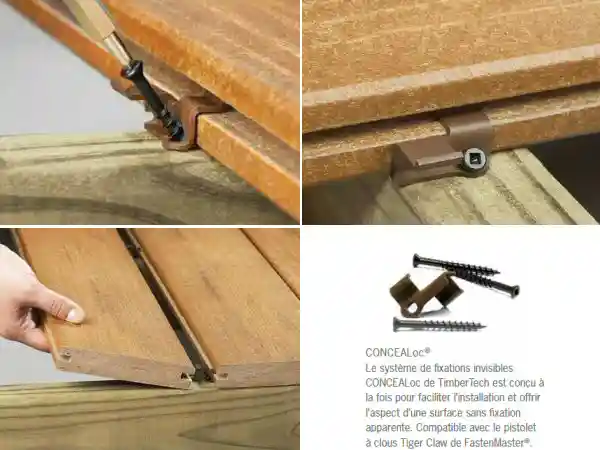 - Fixation TOPLoc avec vis de même couleur que le bois composite